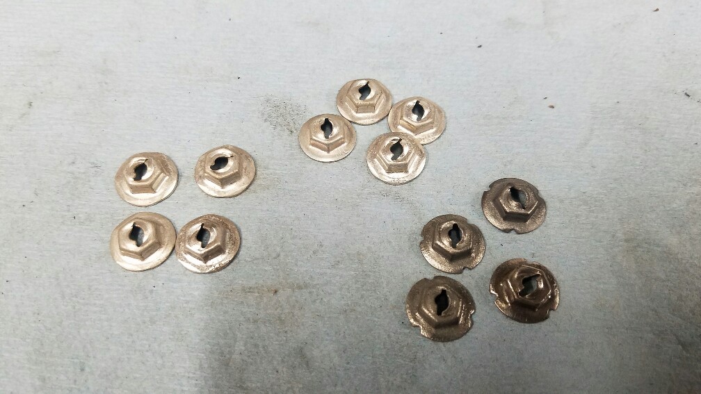 5/16 hex PAL nuts, YWo different original styles. These are for the header and trunk emblems. $30 a set of four.