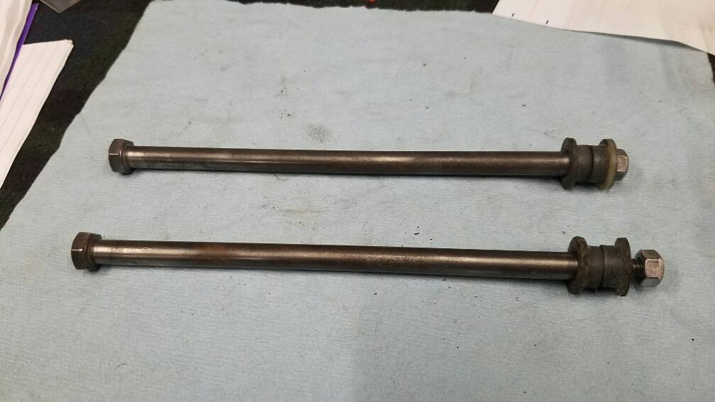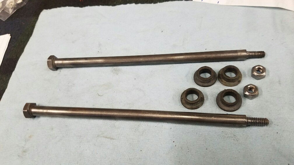 67 68 69 Rally sport headlight door long hinge pivot bolts. Excellent original pieces see head marking. Original locking nuts and gray nylon bushings. $50.