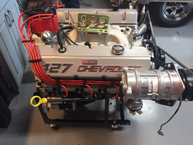 Brand new never fired. We have already added a better carburetor. New Holley 850, 105 amp Delco alternator, mini high torque starter plus pulleys, power steering pump and brackets and even an A/C compressor. #252 of 427 made, Asking 23K obo.