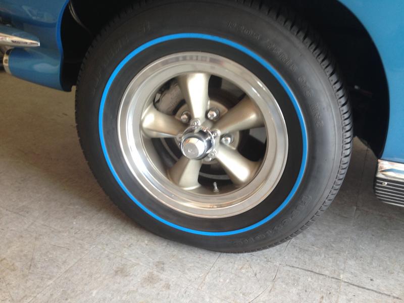 ----Man, Those really look like American D's. I bought a set new in 66 from Jeg at Jegs Automotive and I just cant remember if they had any label on the back. I believe that the center ribs on the back are very similar too. I have two sets of original 14 by 7 Torque Thrust straight spokes. I was told by the sellers of both sets that they were 67s and they both have the big letter American Racing cast on the back side as well as the size. Not definitive, but you still have a good looking set on that Vette. Are there any spacers involved with your installation? That might help……..Bill S