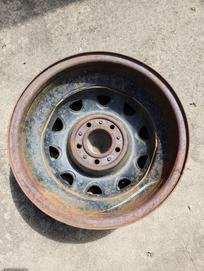 this is a 15 x 7 mopar rallye wheel that was a spare for either my challenger ta or my aar cuda. I have had this sitting around for over 30 years inside. it rolls very straight. lug holes are all good. it is a 70 dated wheel.