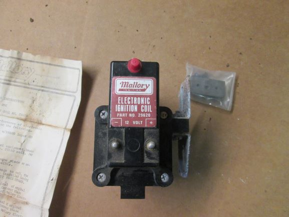 new coil, box was in a damp area and the cad bracket is a little corroded, 879 non smog manifold, 2 broke studs, not sure if year is 8 or 9?