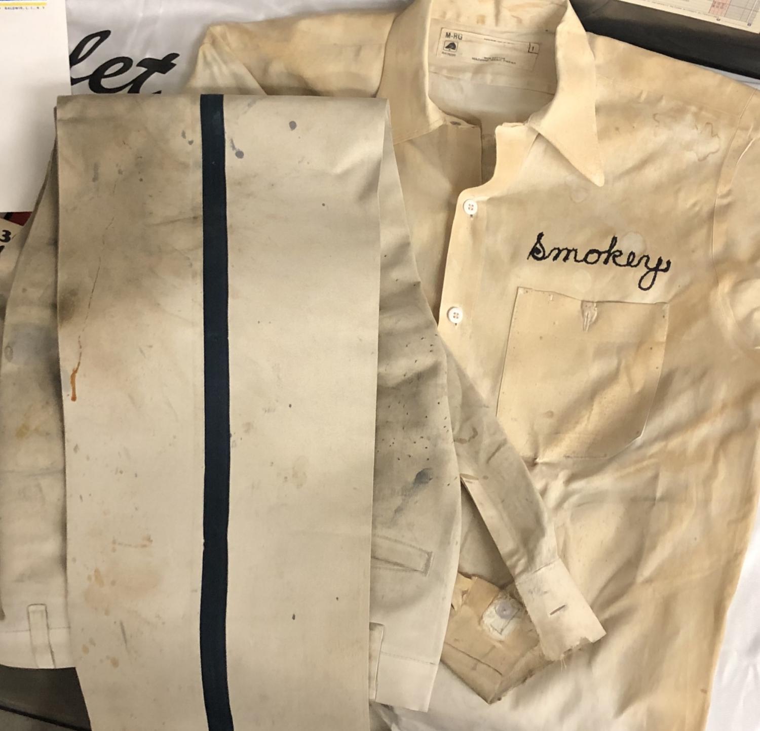 Smokey Yunick uniform... there are lots of pics of him wearing his white and blue at the race track. I obtained this straight from Smokey’s daughter. ( I do have cert. of authencity but cannot locate it at the moment.. will provide to seller whenever (if) it shows up) I believe Trish Yunick is probably still around and could probably be contacted . She was always very nice to me. |