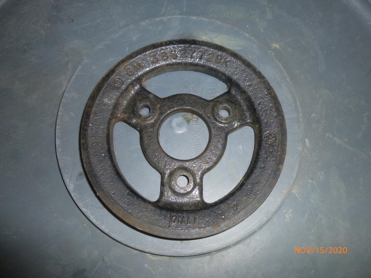 This is a very rare cast iron pulley used only on the 1967 L78 Chevelle. It is a real GM part and in great condition. Part # 3862772
