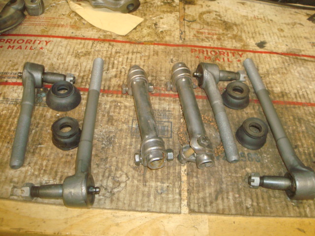 rebuilt upper control arms very good original riveted ball joints boots have a couple tears some pitting on bottom of arms 300 sold very good original tie rods, boots and adjuster sleeves 275 SOLD original backing plates real nice shape 5463497, 5463565 275 I was just made aware one backing plate is camaro one is Chevelle sold original disc brake spindles 250