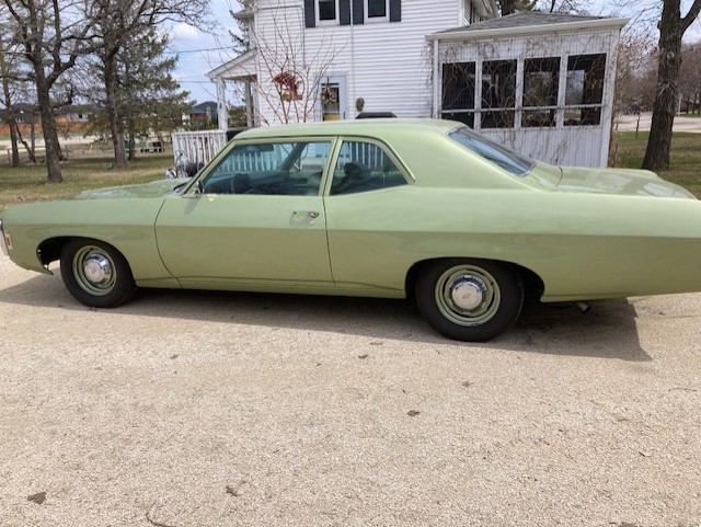 427 / 425 hp (L72) "512" CE Block - 4 bolt main , "840 " Rectangular Heads , Deep Groove pulleys , Muncie 4 speed (M22) , Vintage Hurst Shifter. Janesville Wisconsin built Vin #15411. Non - original powertrain . Current powertrain was sourced /rebuilt in 2009 when car underwent a frame on restoration . Non #'s match car but is all cast # / period correct . ( As you could order it in 1969). No paperwork was found so, consider this to be a Tribute at best . Built to be a nice " Driver ", not show . Next owner can take it to the next level , or simply drive as is . Judging by how clean the floors are , it's likely this car spent very little time on the street as it was former drag strip car. 12 bolt Posi - 3.73 , F41 HD Suspension 15/16" F/R sway bars . 4 - core rad , NOS Greenline gauges , Correct Holley Carb on 163 Aluminum intake. P. S. , Disc brakes. Factory Reverse Back-drive assembly intact. Original mileage is unknown as speedo assembly was replaced . BFG's on "YZ" 15 " D/B Steel rims , Rare Soft Ray Tinted Glass . New correct Biscayne interior, carpet with restored seatbelts. Repainted Frost Lime ( as per cowl tag ) , with lots of NOS parts ..... bumper , tail light assemblies , emblems etc. Last year for the 2 dr post sedan model and seldom become available, especially with a L72/M22 powertrain... $27,500 USD FIRM ( $37,000 Cdn) . *** *** listed for one week only , before going into storage for the winter . Vehicle is located just south of Winnipeg Manitoba Canada ( 1 hour north of the USA border )