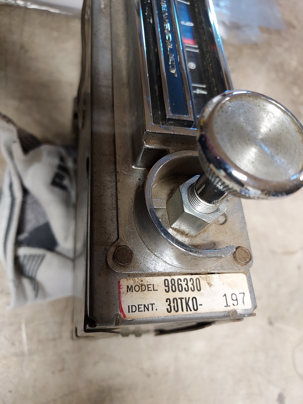 This AM radio, I THINK came out of my Dad's 1965 C/10. I am pretty sure this is the one I pulled. This is model # 986330. Identification # 30TKO -197. Doing research online the model number matches 1965 truck. Maybe it's also correct for other models? I worked when I pulled it in about 1986. I know because I put a battery in the truck and checked lights, heater, radio etc. So that info could be put in the “For Sale” ad. But for this ad, I am going to say it does NOT work. The truck got wrecked. My Dad rolled it end over end 1.5 times. I took this radio and tissue dispenser and a couple other things out before I sold it. The face is in very nice condition showing light flawing. The lens is dusty but all the print is crisp. No major scratches in the lens. Chrome bezel trim and the chrome on the word CHEVROLET are very presentable. I did a light cleaning with a Fine buffer paste and just my finger. This should clean-up well. The radio left knob clicks on and off. The right knob adjusts the channels smoothly. Left knob missing. I did find some 1965 Chevrolet radios online, they all had this knob. I don’t have the time to try to figure out how to test it. $75 plus the ride. Chevrolet 1964-66 truck, Suburban AM radio 12V Delco 985672 1964 Delco 986330 1965 Delco 986771 1966 Last edited by dannystarr; 09-21-2023 at 06:16 PM. |