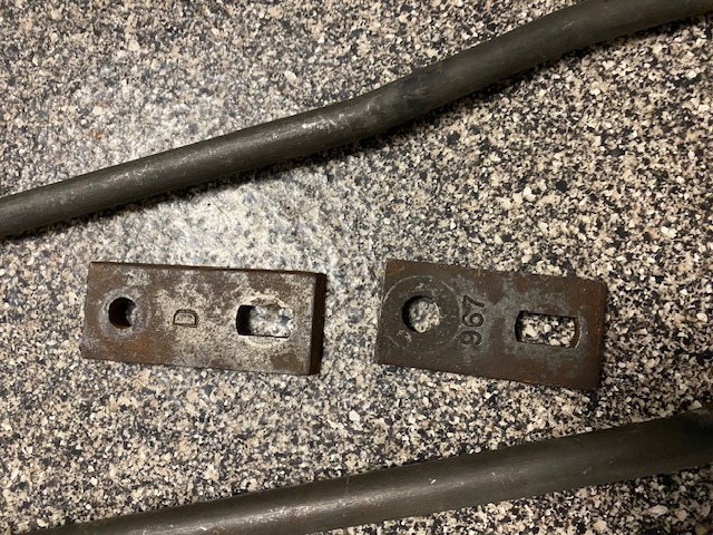 OK, the two rods and the "D" lever are the A-Body parts, the "967" lever is from B-Body, all original pieces, in super cherry condition. Price does not include ship or PP fees. $120