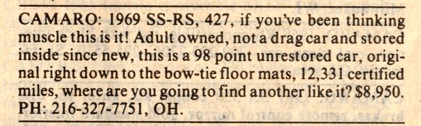 My uncle ended up buying it for $8500 since that was all he had!  Luckily for him and me, it was not listed as a Baldwin Motion camaro.