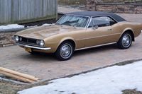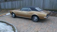 A 1967 camaro.One woman owner 1966 to 2011. It is gold on gold. 250 ,3 on column. Bench seat,black vinyl top. Awesome original condition. Service records since new, Built first day of production. LA Body #32[compared to #200+ on car #00001] 08D build date. Many componenewts dated July 1966,some of the earliest dates known. PMs work best .... 24,900.00 or make offer.