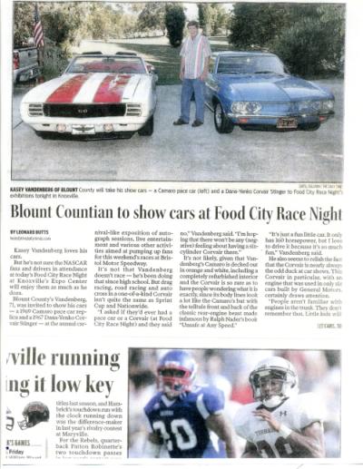 It was the first time a Corvair had been shown. Of the 40 or so race type car's there , we had the only 2 regular ones. It was WILD, and Wolly.......Once is enough, to last a lifetime. Local paper covered the story of us going.