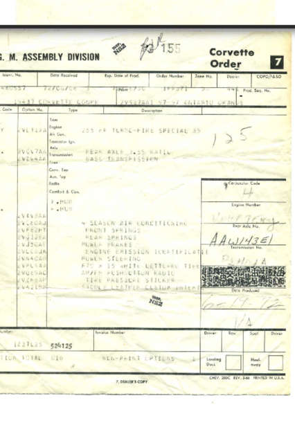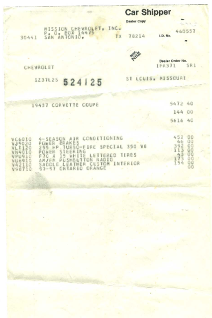 What I found was a 1972 Ontario Orange with saddle leather interior LT1 coupe with air conditioning, a pretty rare combination. This appears to be one of the best preserved and rust free Corvettes I’ve ever seen. It also has the Protect O Plate, shippers copy, two Corvette Order copies (one still on the tank) and the new car inspection form. It has a number of other nice options. The car was ordered in San Antonio and has been there and Austin its entire life. Even the original exhaust is still on the car and in good shape. Tires, water pump, and master cylinder have been changed out; but it really is an amazing car. He’s indicated he wants in the $50,000 range for the car, but I don’t know what good versions of these cars are worth. Any ideas? I'm more of a mid-year guy, I do feel this car has the potential to garnish most every Corvette originality award out there. |