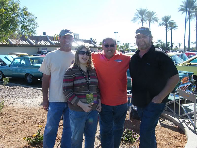 Our vehicles remind us everyday...as we have the COPO Pete stickers on them. Also, we definitely missed Pete at the auctions... Here's a shot from a few years ago... Left to right...Shaun, Holly, Eddie Montini and Pete! [img]<<GRAEMLIN_URL>>/smile.gif[/img]