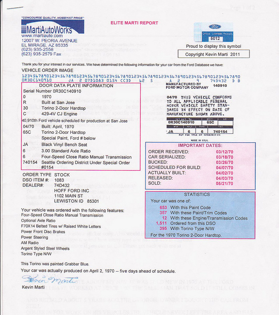 The drivers door had been replaced at some point so the tag is gone. I am going to send for the Marti report soon. Yes I have joined that site but just started posting to figure out which report to get.
