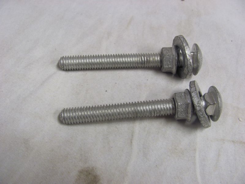 Original RBW carriage bolts for mounting the gas tank on 67-69 Camaros and 68-72 Novas They have the slight bend from installation and are in nice condition, the washers have some pitting on them.