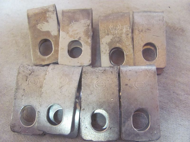 8 very nice original restored Fuel line clips for Camaros Chevelles and Novas with a 3/8" fuel line and 1/4" return line. Stamped I inside 2 C's. PIT FREE