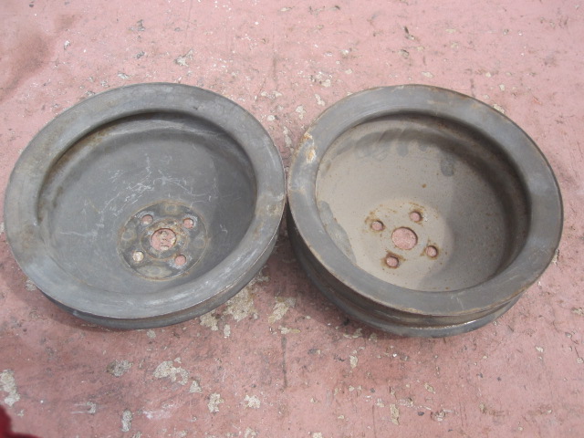 That never interred my mind when looking at them initially. Going back and looking closer it makes since. There are no pry or grinding marks on the single ones. I actually have 3 single and 2 double groove pulley's. The single ones do look repainted. Is there any value for the single groove pulley's. This was all circle track stuff. Thanks, Larry.