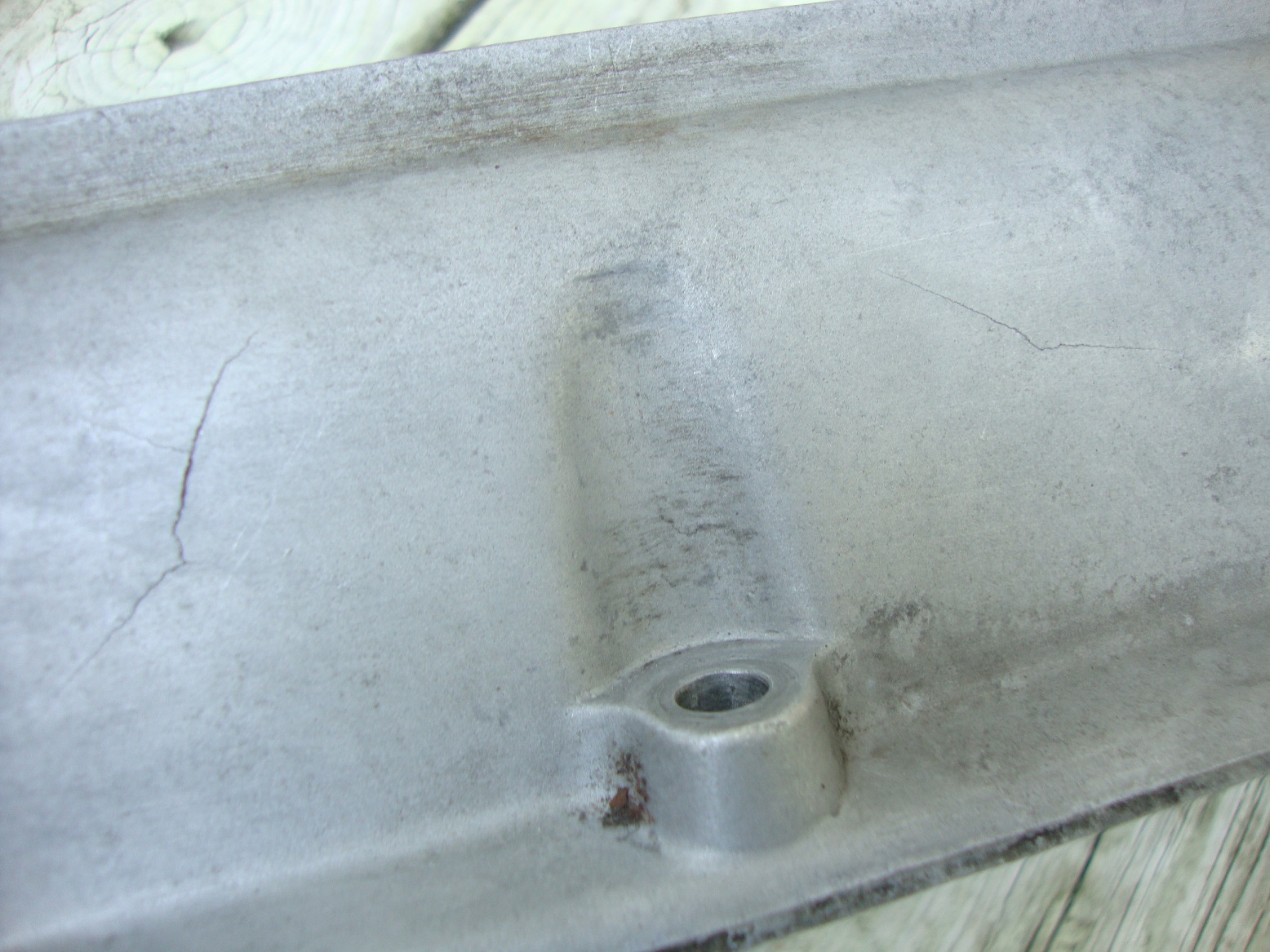 Matched pair of original no dripper valve covers. Driver's side cover looks like rocker arms hit the side at one point and caused some stress cracks. I'm sure it could be repaired. Natural aluminum finish. Never blasted or polished. No other damage or repairs. Pass side cover is in excellent shape. $235 shipped for the pair. -Matt <span style="font-weight: bold">SOLD SOLD SOLD SOLD</span>