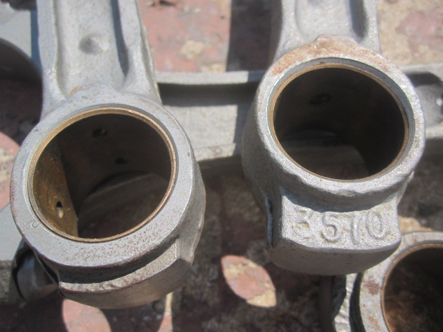 Selling a set of 8 used bbc rods that are bronzed bushed for floating pins. They have been cleaned and were packed in newspaper dated 86. Seven of them have one oil hole in them and the 8th has multiple as shown not sure why. Missing one nut. Price is 225 paypal ff shipped lower 48. Larry 520-349-2337