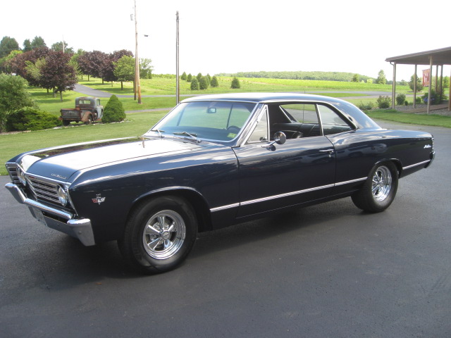 Testing the waters to see if there is any interest in my awesome real deal documented L79 chevelle,this car was done with all n.o.s or assy line pieces only a handful of repo stuff used.It has enough paperwork to choke a horse and the orig owner lives down the road from me still,i also still have the orig 1967 pa title.Its deepwater blue with black bucket seat interior: tach@gauges,m21,355 posi(now 410),metallic brakes(nos),rear seat speaker, orig am/fm radio(added) ,rear antenna,tinted glass,hd clutch, F70 redline tires etc.The car is all born with components except the short block which was warranty replaced with a 302 in 1972(have the dealership paperwork) to prove it and the orig owner still has the 302,it has a correct orig 67 chevelle l79 short block it the car now with all the orig top end ,m21 still has the vin # on top,the carb,dist,alt,valve covers,radiator,fan,master cyl etc are all orig to the car.I installed a few day 2 bolt on items that could easily be removed if wanted ie: orig ET lift bars,orig hurst dual duty rear shocks,cragar wheels,clear dist cap,orig old nos appliance headers 4 flange (heat treated in white),orange wires.The car is straight as an arrow and body and paint are beautiful,front fenders were nos as well as the rear quarter panels all else is orig even the windshield with its 1981 insp sticker which was the last time it was driven,the floors and trunk are solid and rust free and has its orig jack,trunk mat and orig spare with orig redline tire .Iam asking 60k but may consider a trade and some $$$ or may trade up also for the right car ie: superbird,z28,copo etc.thanks 570-854-0896