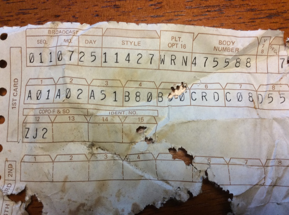 I also found a piece of another build sheet in the bottom part of the back seat. |