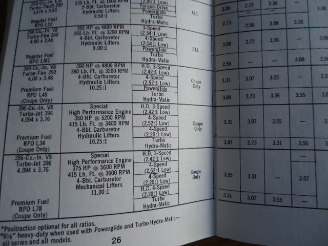 The sleeper was of course the L79, even though it didn't have the aluminum intake and Holley any more, it was still a real powerhouse. That combo with an M-21 and a 4.10 rear ate most big blocks for lunch. A lot of my friends who had an L79 equipped car often added the factory solid lifter cam, Holley with a Winters manifold and headers along with some better tires and traction upgrades...they were fun to watch. Still one of the best combos Chevy ever made.. -wilma
