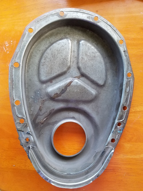 Small Block Timing Cover is in excellent shape with no issues Sold. I believe the date is 8 68...This cover is for the eight inch balancer on the Hi Perf small block engines. Sold