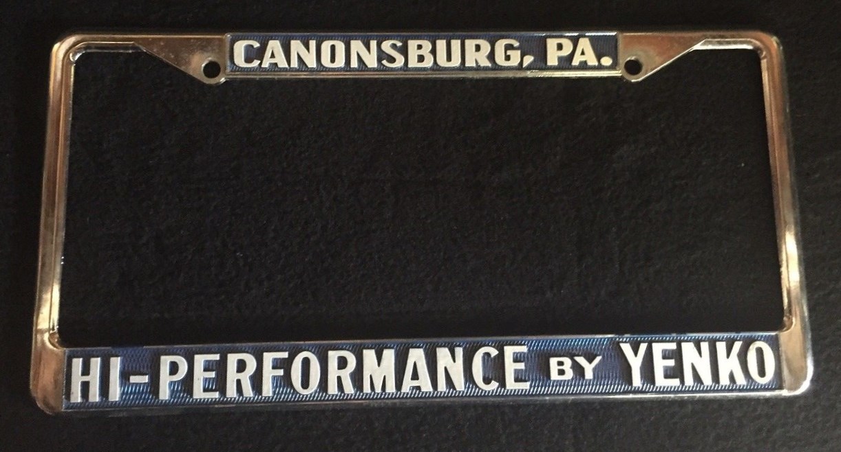 The comma after Canonsburg looks different from the re pop plate frames.. Some of the letter fonts appear slightly different also..