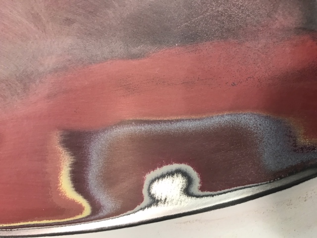 We are getting ready for exterior paint. The upper dash and dash pad are a darker red . The lower dash and rest of the interior are a brighter semi gloss finish.