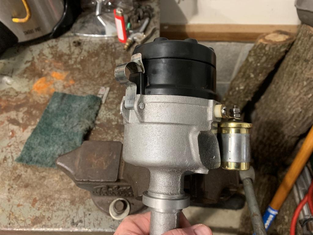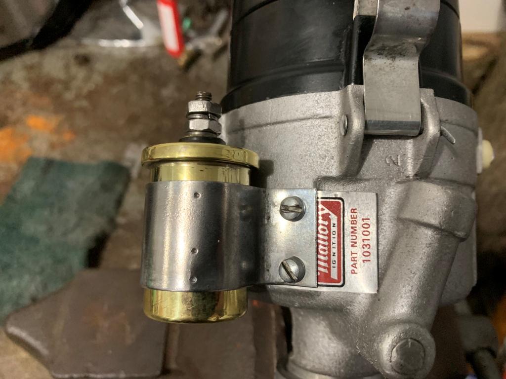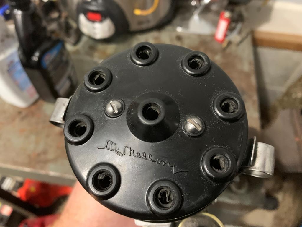 Model 1031001 Mallory distributor.  I have not ran this unit but all the bushings are good and tight and points did not appear to be worn and the cap & button or in good shape.  Selling as is but I did go through it and clean at set both the points to 0.019".  Didn't think to check the advance but in these units they are adjustable.