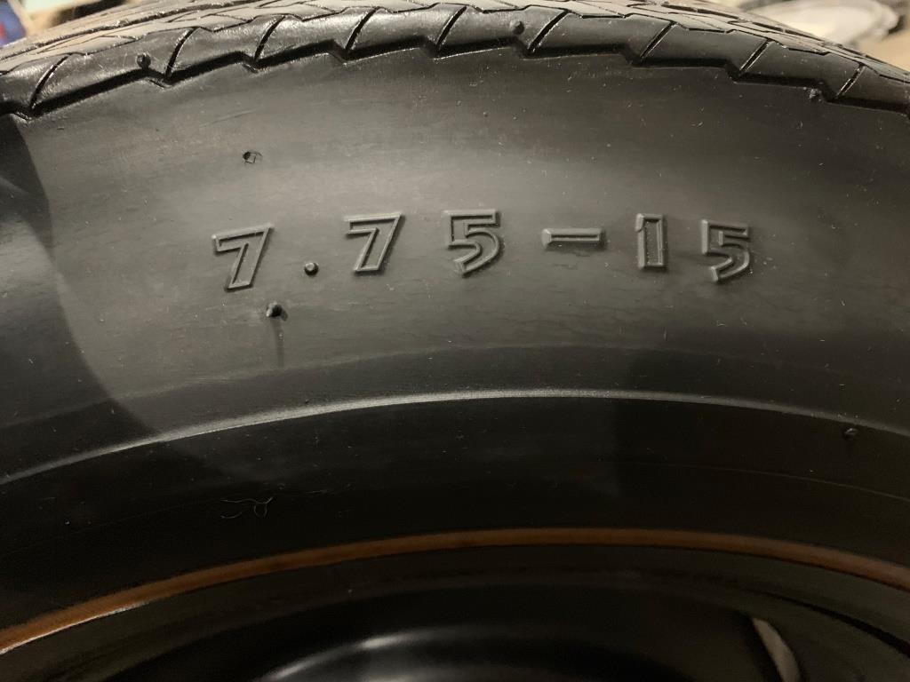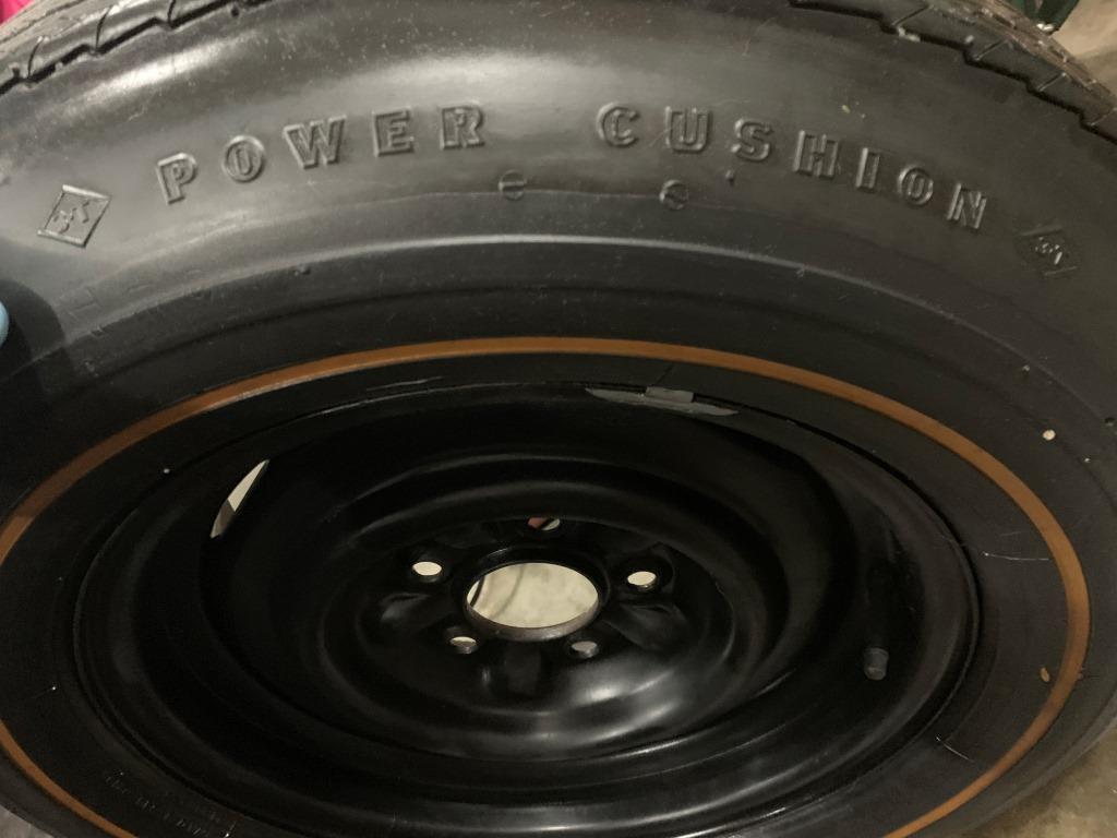 Goodyear Power Cushion Gold Stripe 7.75-15. May of '66 date code if I am reading it correctly and I also believe these to be only for the 65-66 Corvette. This tire is mint as seen by the bumps still on the tops of the tread. $1500 plus actual shipping.