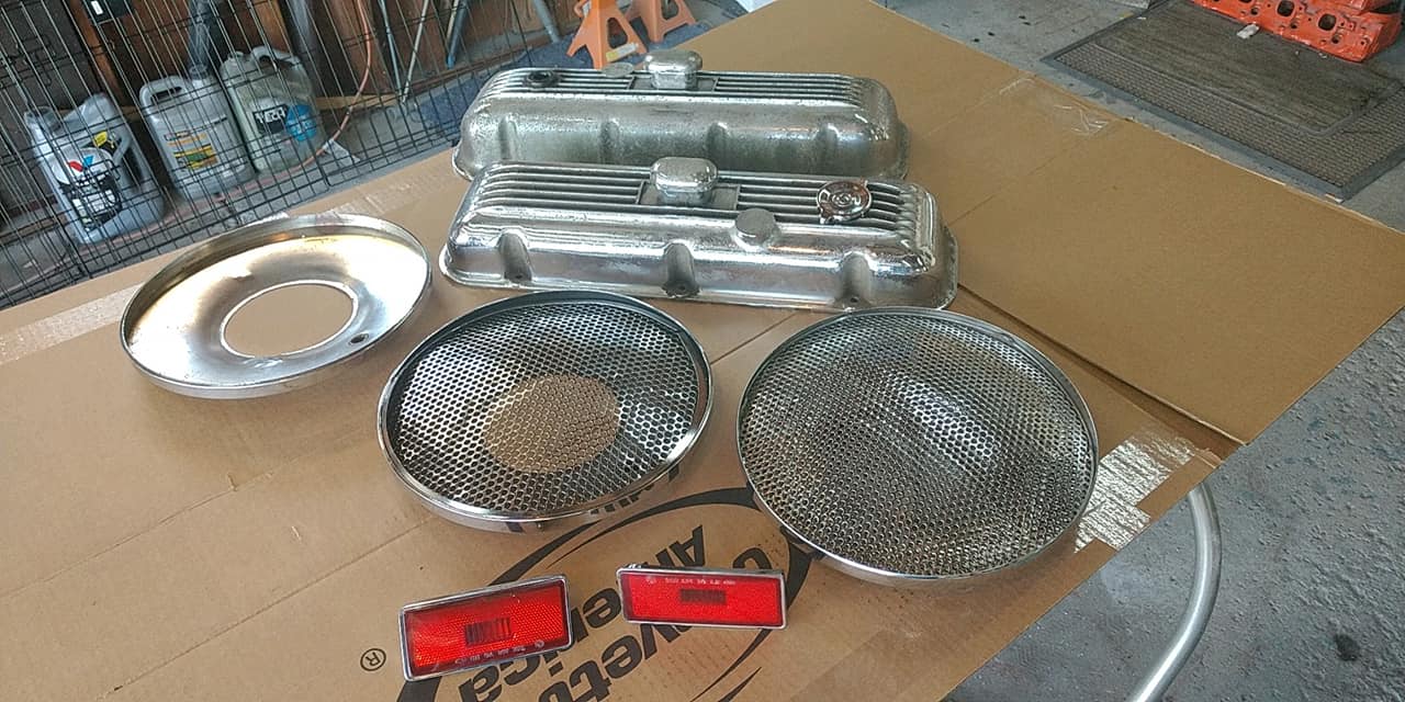 i just picked up a few fly eye air cleaners... 2 cal custom and one Mr.Gasket.. if anyone had any parts ( screens or interior support screen) i would be interested. need a cal custom wire retainer ring and interior base .also in search of 2 motion valve cover emblems in good condition, need not be originalof course.