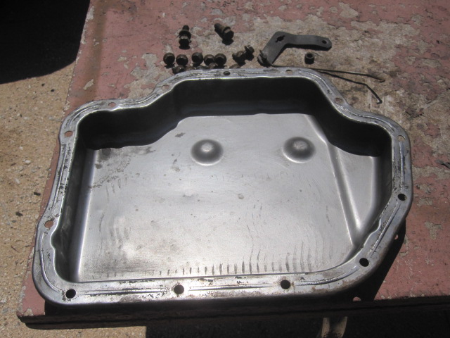 Selling the pan, pan bolts, trans mount bolts, and shift lever just removed from a 1970 turbo 400. The pan has surface rust on it as shown from sitting outside the inside is clean. I have the rest of the trans if other parts are needed. Price for items shown is 120 ff shipped lower 48 USA. Thanks, Larry 5203492337