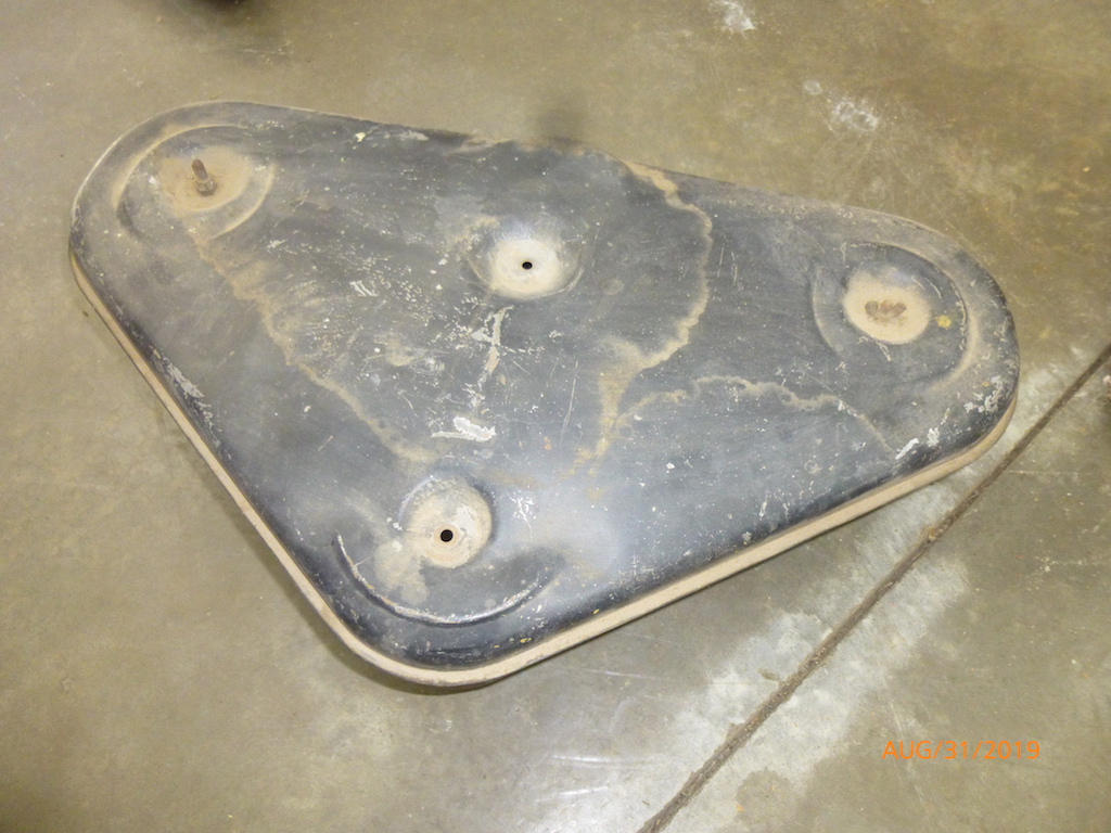 Very nice original and complete air cleaner. One flaw I found is a slight crease at the scratch on top that I have pictured.