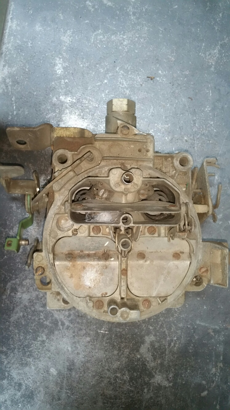 SOLD...This is a pretty nice carb and still has the tag on it. It's dirty, but has pretty good color to it. I can see that there are 2 pieces missing, the rod that connects the primary and secondary shaft and the vacuum pot that goes to the secondary door. There may be more missing that I don't know about. Everything moves free and smooth and seems to be in real good condition. I have not removed the top to look inside. I don't know of the fuel inlet is original or not. $500 plus shipping. 7040286 D00F E