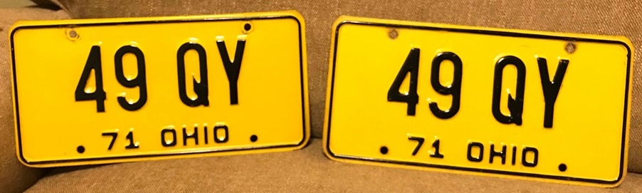 1971 OHIO 49 QY , pair , Survivor Car quality $50 1970/1971 Florida , single , never mounted, Blue backing with reflective white . $25 NEW JERSEY , 1971 , PAIR , Near mint . 950 HZM $45 Cream colored backing with black lettering New Hampshire vanity ,, pair , K1YRE , 1969 , scratch on one of them . Very nice condition $ 40 South Carolina 300 Years Tricentennial Plates, pair . Mint condition. They were used for 2 weeks on my 1970 SS Chevelle $ 75 All plates shown include shipping 48 States Scott 918 381 1234 Photos will be posted or I can text them to you , Thanks