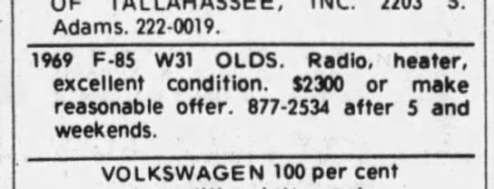 My car, A gold F-85 W-31, was purchased new on April 1 1969.