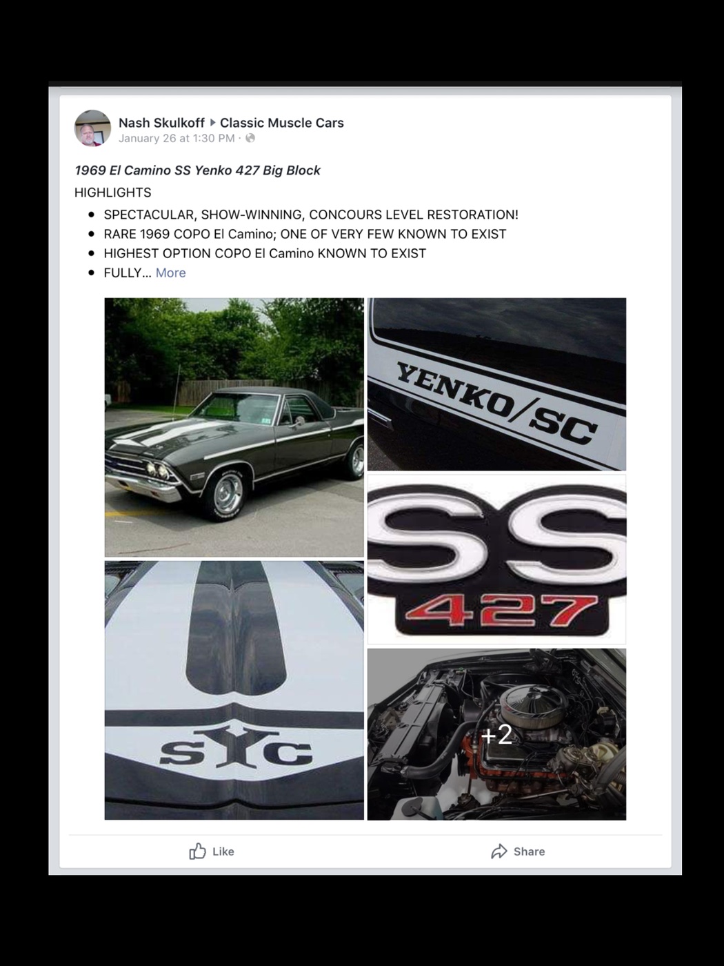 May have already been discussed here.. Did anyone see the el Camino on FB? Says it is documented one of ten copos and only Yenko COPO .
