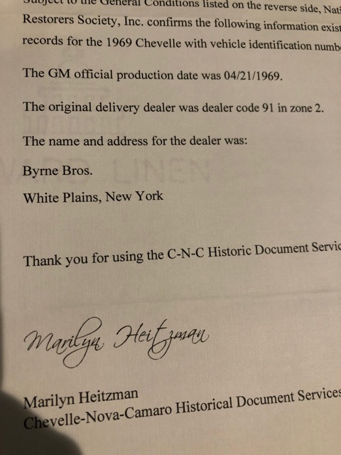 The original delivery dealer was Byrne Bros., White Plains, NY.