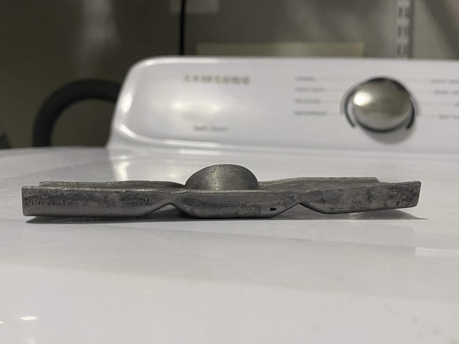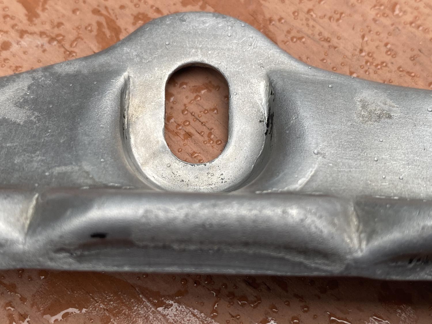 Up for sale is a double crimped battery hold down. This clamp has not been bead blasted; instead it was dipped in Evaporust to maintain its natural finish.