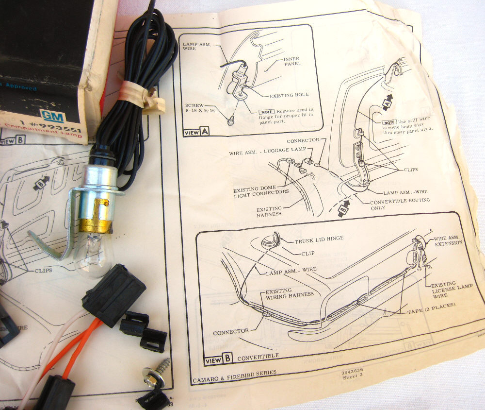 NOS GM 302/350 Z/28 engine dipstick. Hard to come by early design that has the flat rolled loop handle. The GM part# is stamped on the blade with "USE SE ENGINE OIL". Very nice detail item for your Z28. 1969-1970 Camaro Z/28 (302 + 350). **************SOLD***************** -------------------------------------------------------------------------------------------------- NOS GM drivers side chrome valve cover. It is a GM replacement and may look different than the day one from the assembly line. It has a relief area on the back side for the brake booster clearance. Part# 325169 is hand written on the GM box. The chrome is typical GM and not so shiny. Otherwise is Brand New. 1968-1970 Camaro, Corvette, Chevelle/Malibu/El Camino, Nova, (396, 427, 454). Listed on eBay starting at $147 and ends tomorrow night (Sunday Night). EBay link: https://www.ebay.com/itm/133465622802 -------------------------------------------------------------------------------------------------- (2) NOS/original GM Muncie Drain/fill plugs. These are the real deal and made by Lisle for GM about 50 years ago. They are correct for the M-22 with the magnet. The one on the left is NOS and one on the right is a very nice GM original. **************SOLD***************** -------------------------------------------------------------------------------------------------- NOS GM trunk lamp kit. This is the real deal and made by GM back in the 1960s. Fits Camaro/Firebird, Chevelle, Nova, and Impala. The GM part# is correct for 1969 model year, but the lamp is correct for other years as well. **************SOLD***************** Thanks, Sam -------------------------------------------------------------------------------------------------- Last edited by GRAFFZ; 08-02-2020 at 05:42 PM. Reason: Items have Sold. |