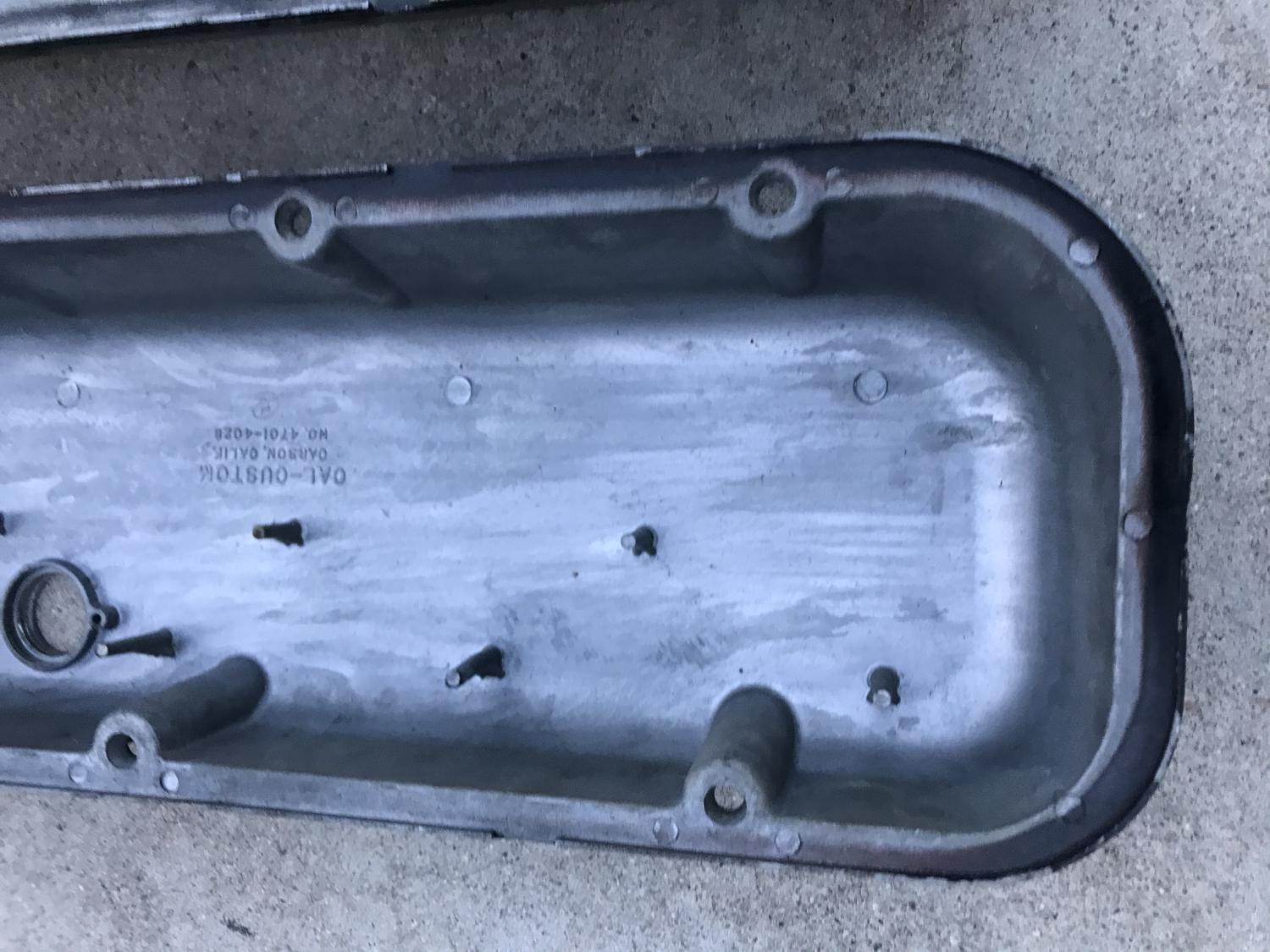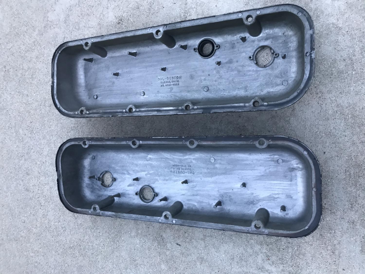 Hi sYc Friends, I have a pair of original Cal-Custom BBC 396 / 454 /427 aluminum valve covers here fresh from the barn / shed. They are dirty, but very, very nice and will clean up very nicely with minimal effort IMHO. I left them as found so you see what you're getting and can decide to clean or use as-is for that patina'd look.