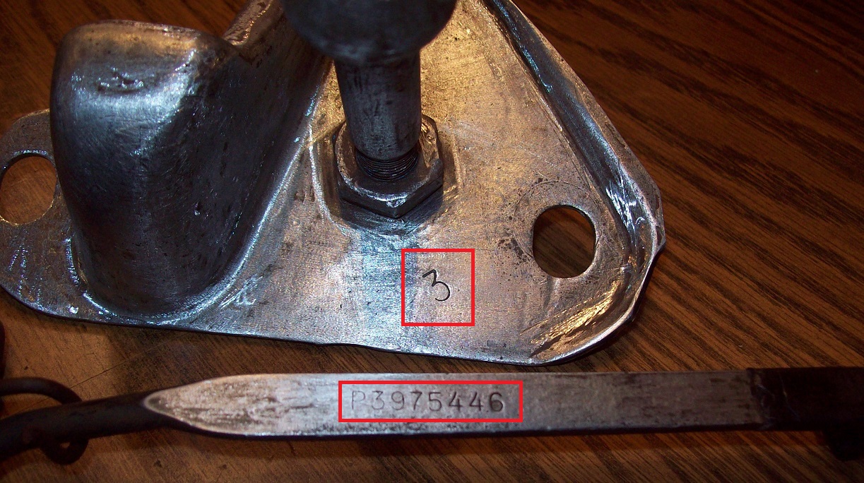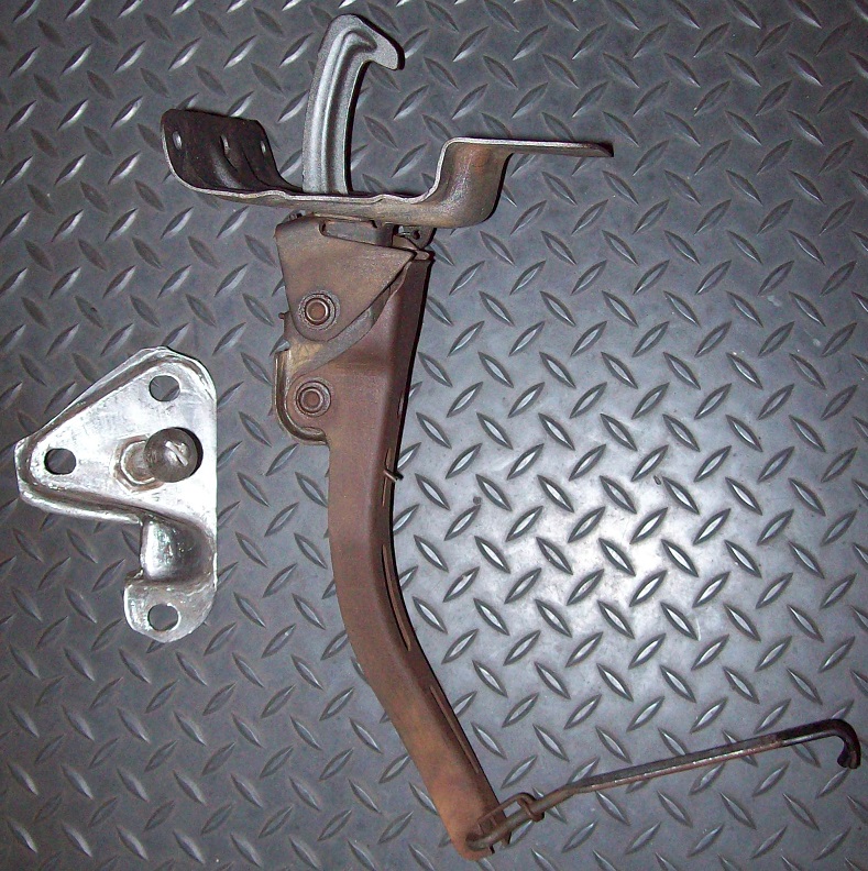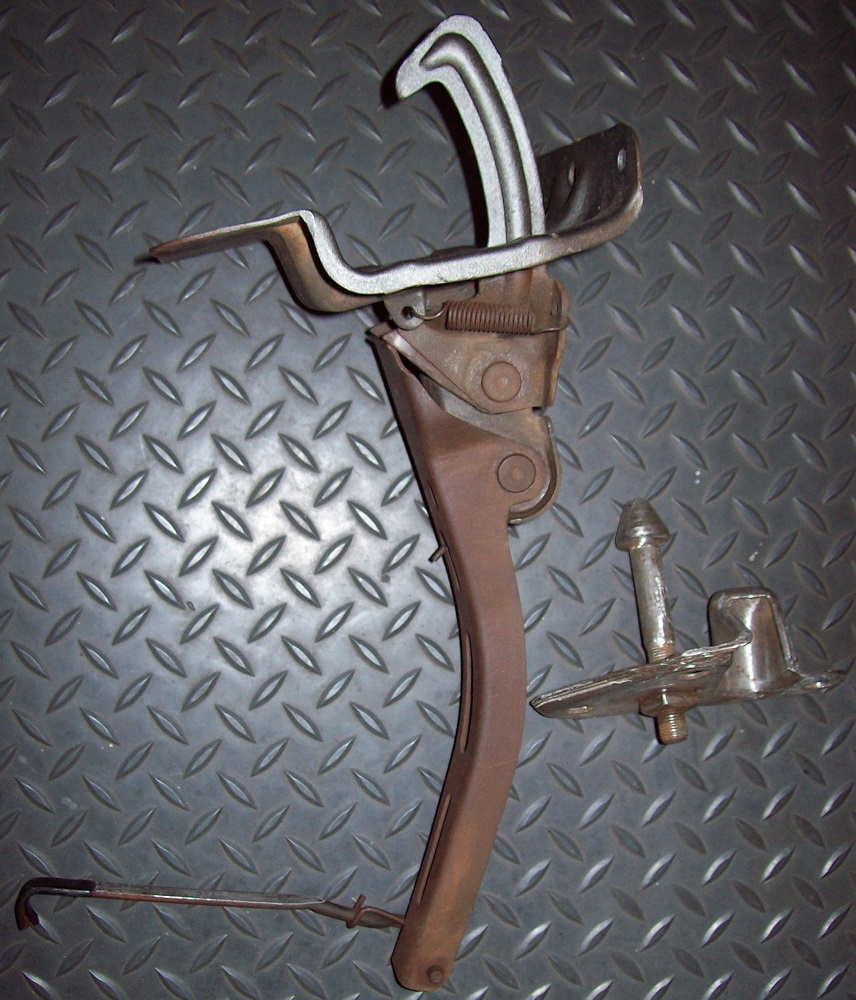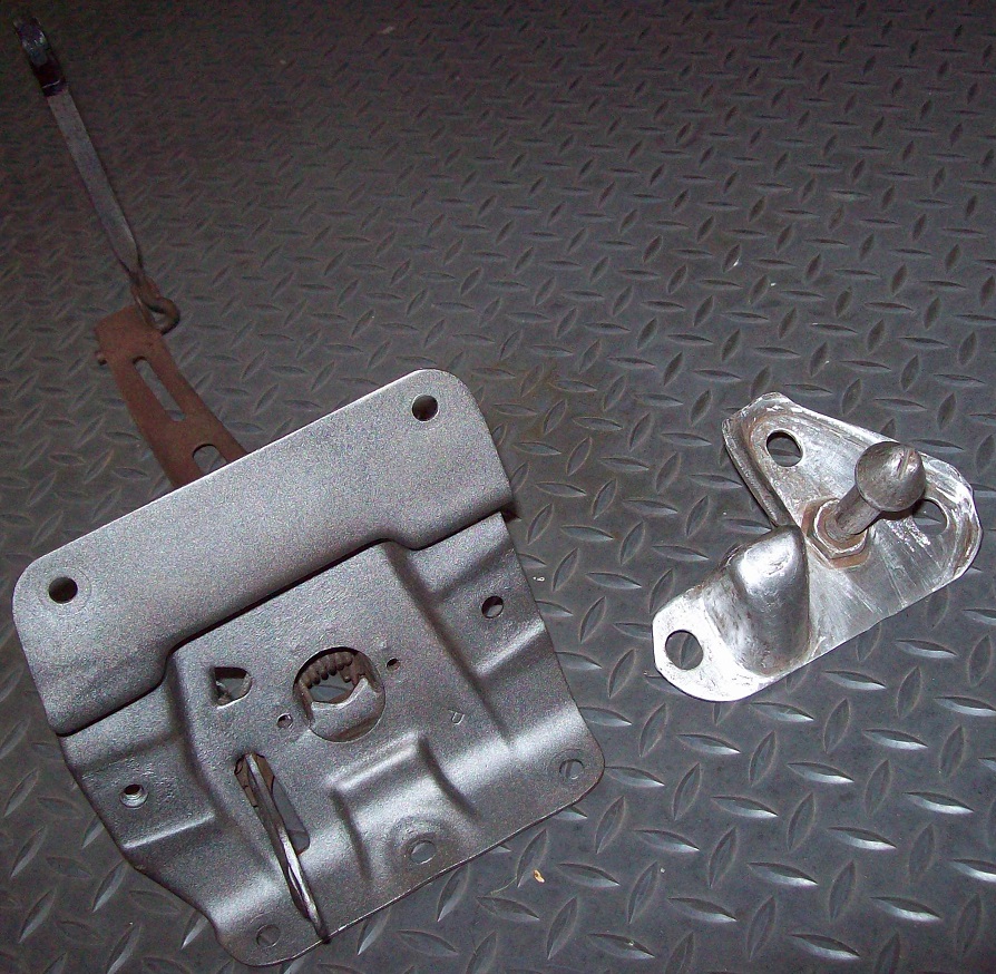 Assembly line "Born With" Used Upper and Lower Hood Latch/Catch Set. Upper piece was painted Blue for some reason so I stripped the paint off and it is now ready for the grey phosphate coating. Lower piece all springs have perfect return - forward action and just needs a good blast and re coating. Parts has a nice clean clear part number on the release arm and clear casting Letter/Number "P" + "3" see photos.