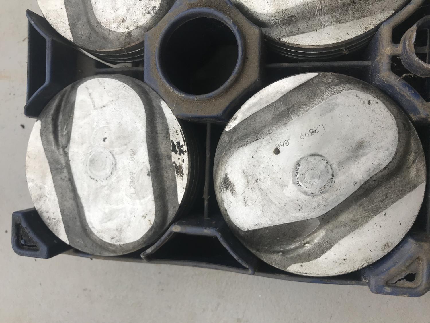 I have a set of used BBC pistons L2399 0.060 over - no rings of course, but the wrist pins are included. Very low miles on them as shown. They've been upside down in a 2L pepsi case on a bench in a barn for twenty years and it shows; they have a thick layer of grime and dusty, but they should clean up nicely I'm sure. The crud and gunk inside the pistons, is just that, stuff that dripped into them while on the workbench... see the tops and sides for condition. I left them as-is so you know what you're getting.