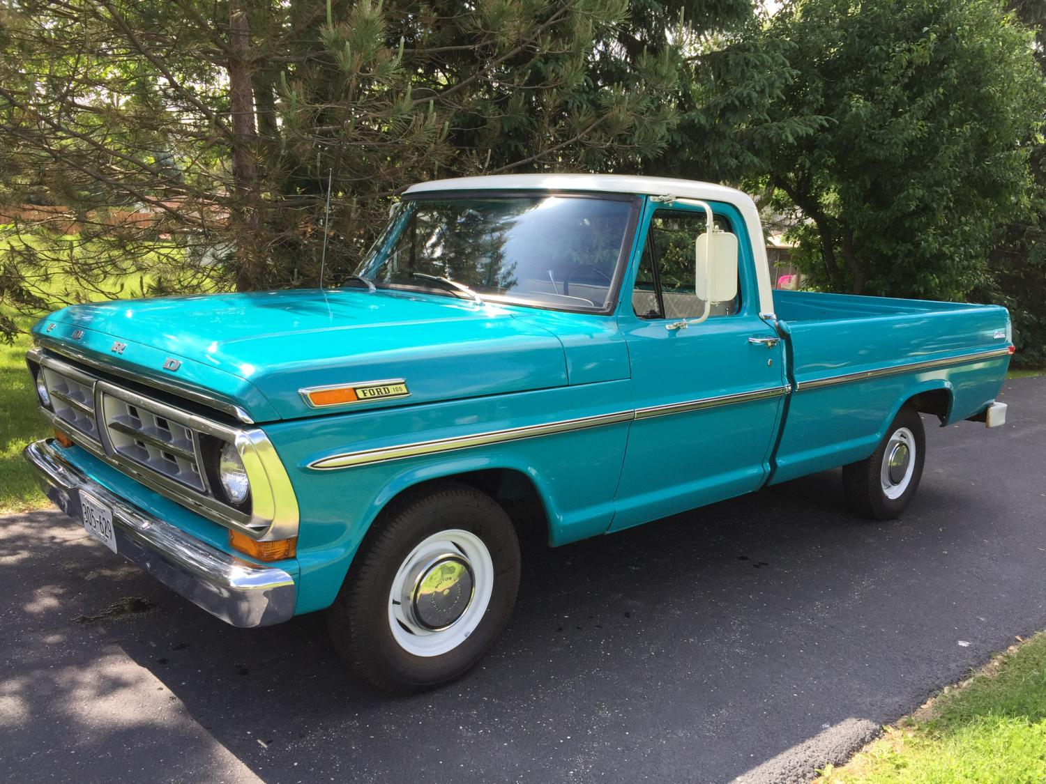 This 1971 F100 was a won by a farmer in a town fair in Wadena MN with a single raffle ticket . The farmer had a daily driver so he used this one sparingly for Sunday church and out to dinner . I purchased it from his family after his passing . Have photo with him and the family in the day !