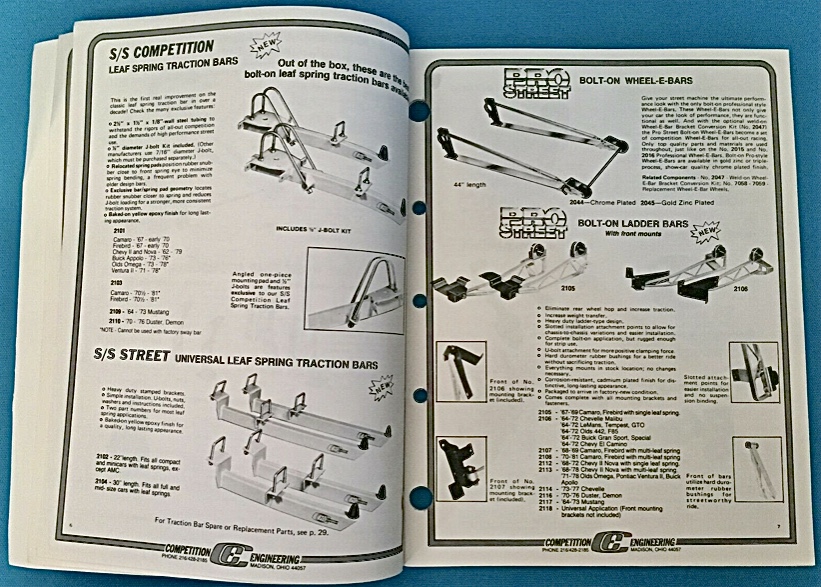 NOS Competition Engineering bolt-on ladder bars in chrome, fits 1964-72 GM A-body. These are brand new with all parts accounted for. Unfortunately the box was discarded many years ago. They have been stored indoors so the chrome is in very nice condition for the age. (SOLD)