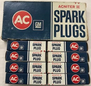 NOS 5613354 R43T Spark Plug set, I have two boxes of 8. Boxes dated 1973 and are the older thin green striped Acniter II spark plugs. Applications are 1970 Camaro SS Chevelle SS Nova SS L78 396 375 HP or 1970 Corvette Chevelle SS Monte Carlo SS El Camino SS Impala SS Caprice Bel Air LS5 454 360 or 390 HP engines. These are the 1st design assembly line style 4 thin green stripes NOT one top fat green line then three thin lines which are second design.
