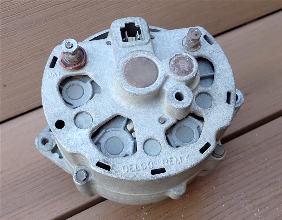 This is an original 1100837 alternator. The date code is 9F17 which decodes as June 17th, 1969. It is in good cosmetic condition with no pitting, etc. It appears to have been through a high volume rebuilder at some point. The pulley spins well. I imagine it should be rebuilt before use. This is a real deal original 1100837 alternator with a great date.