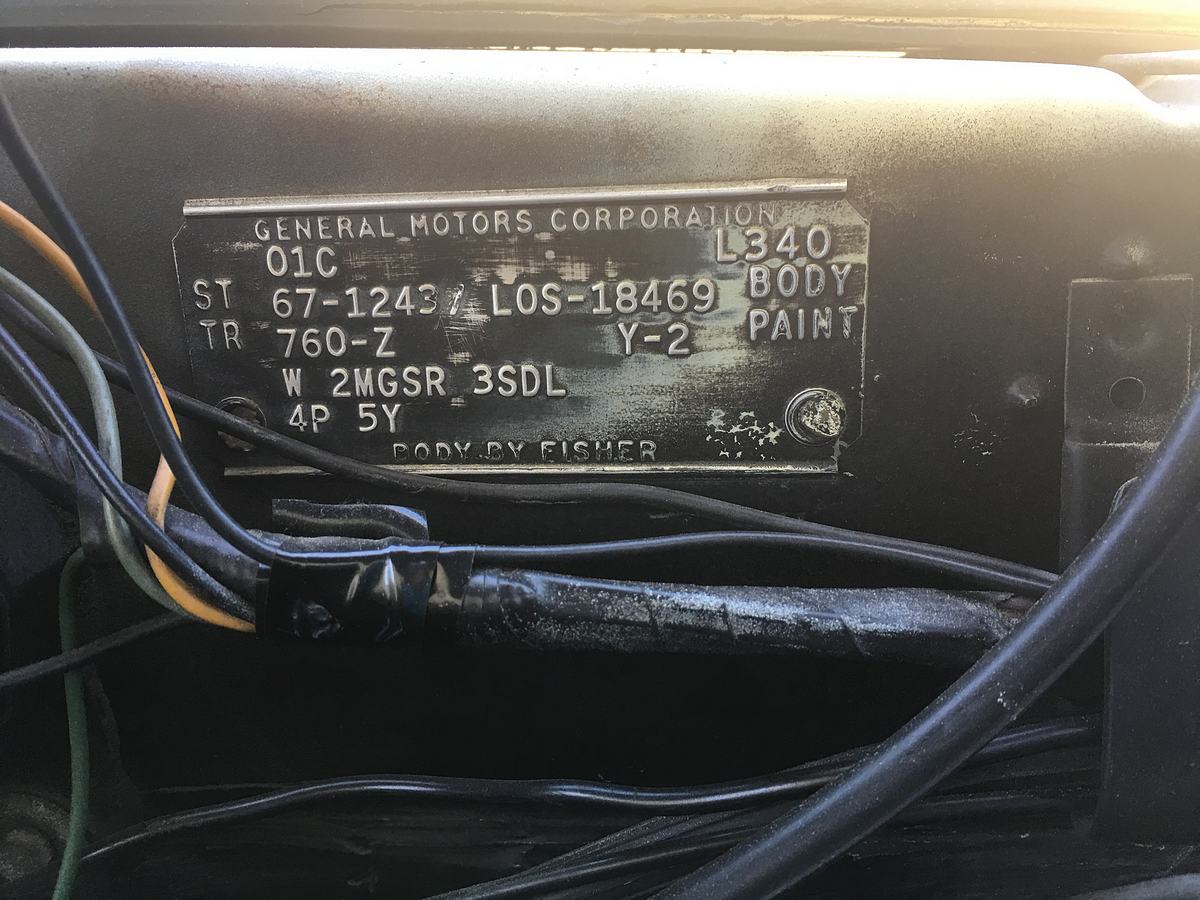 Cowl tag Vin 124377L134825 Interior Differential code Rear spring tag Body Engine Trunk POP