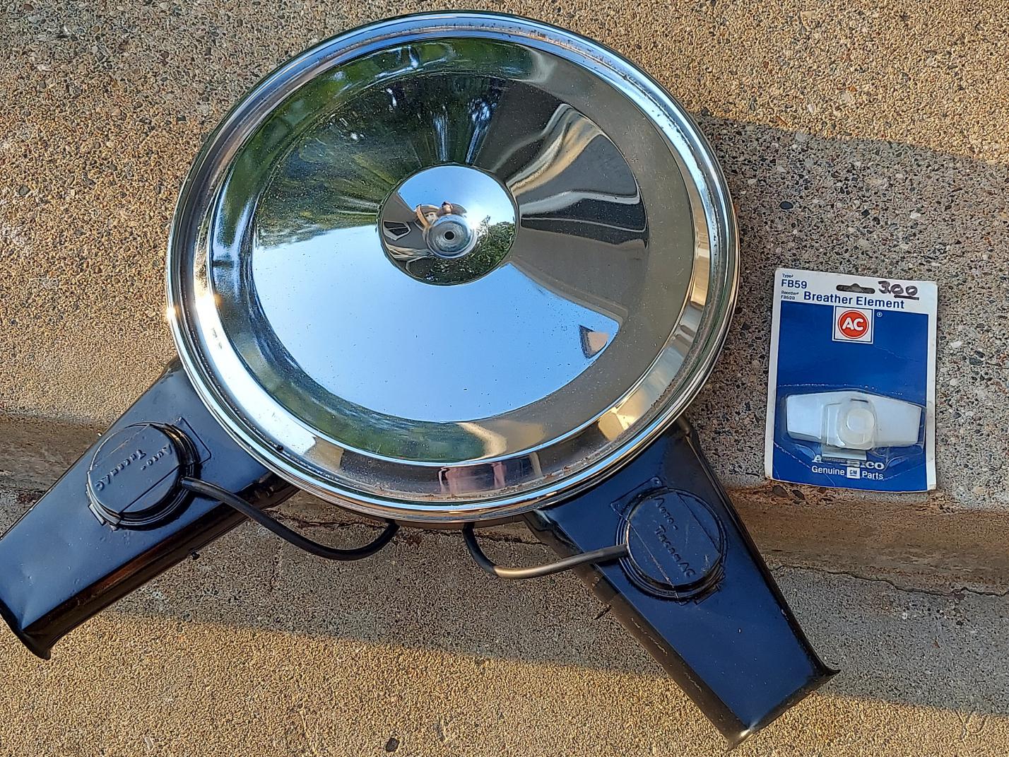 Original GTO air cleaner with chrome lid that has some surface rust in the outer ridge. The pass side snorkel has dented then straightened not perfect. Comes with a AC Delco breather in the package. $SOLD. free shipping in the continental USA only. No usps p.o box shipping at all.